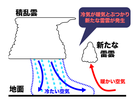 この日は上空に強い寒気を伴う低気圧が日本海をゆっくり東へ移動し、この南東側にあたる関東地方には、南からの暖かく湿った空気が流れ込みやすかった。上空の寒気が強かった(最も低い所で、上空約5800m付近で―9度以下)ため、大気の状態は非常に不安定で、関東~東北地方で非常に激しい雷雨となった。また、積乱雲から吹き出す冷たい空気と南からの暖かく湿った空気がぶつかり、新たな雷雲を発生させたため、広範囲で激しい雷雨になったものと考えられる。(※参照)
