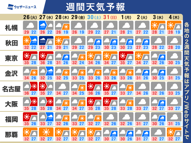 週間天気予報 週後半に猛暑は小休止も 厳しい暑さと天気急変に注意