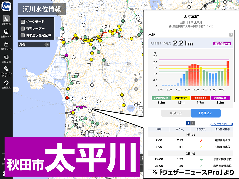 秋田市 太平川が氾濫のおそれ 警戒レベル4相当の氾濫危険情報発表