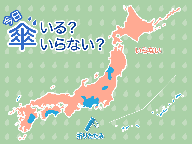 広く日差しが届くものの、東北や東海、西日本の一部地域では、午後ににわか雨の可能性があります。