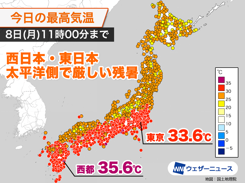 暑さ収まらぬ週明け 西日本・東日本の太平洋側で厳しい残暑