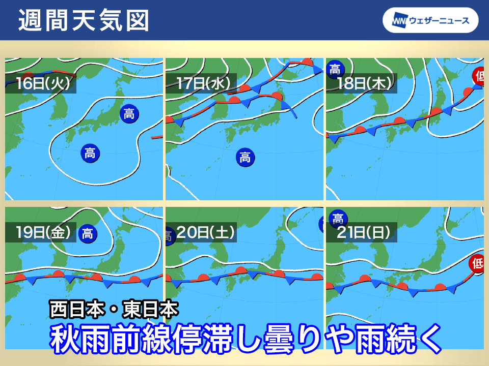 秋雨前線は週の中頃に本州通過 週末は太平洋側に停滞予想