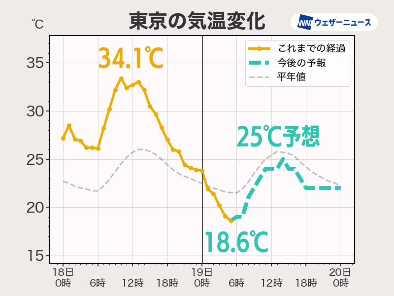 関東や東海は残暑が和らぐ