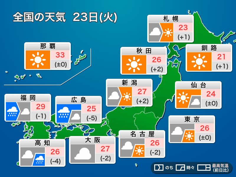 今日9月23日(火)秋分の日の天気予報 西日本は強雨に注意 秋の空気