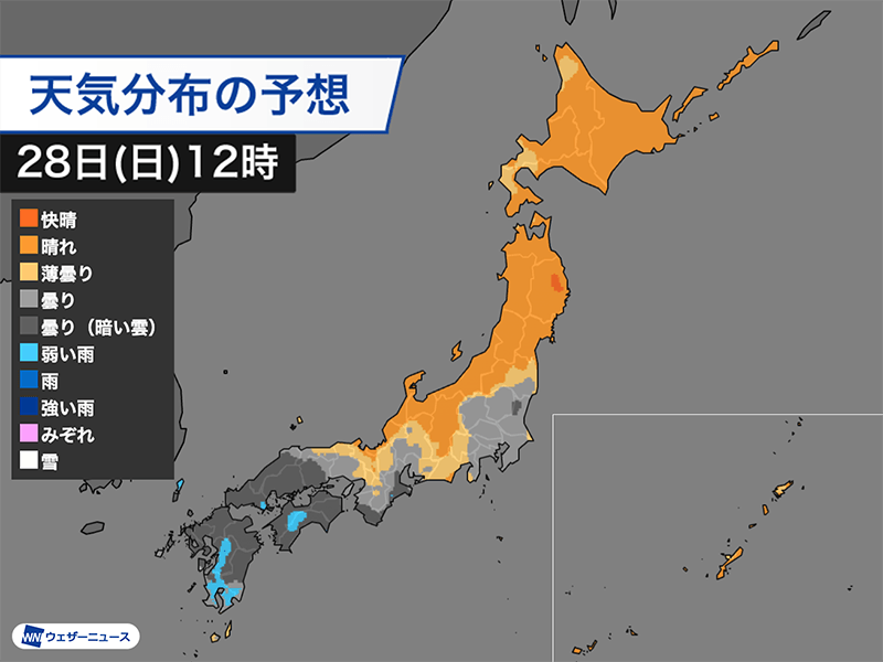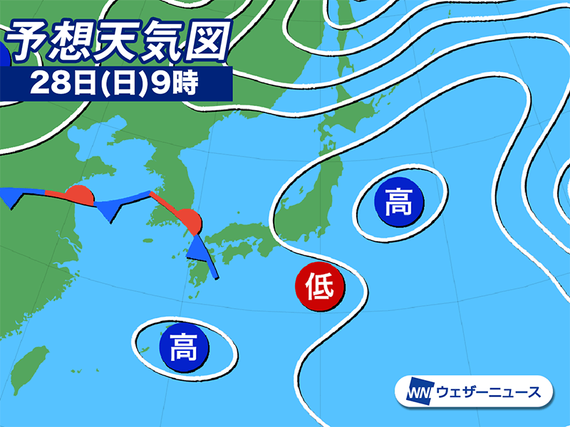 明日9月28日(日)の天気予報 西日本は次第に雨 北日本は秋晴れも天気下り坂