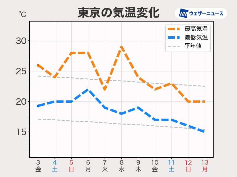 ただ、週明けは寒気の南下に伴い、北日本を中心に気温がガクッと低下します。