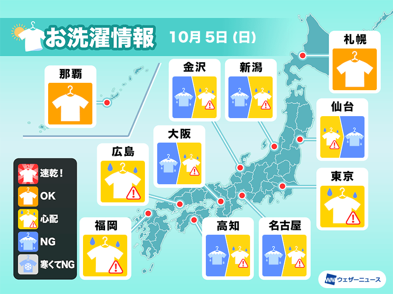 衣替えの時期となりましたが、この先の天気は周期変化となる見込みです。大物の洗濯のタイミングは週間の天気予報を参考にご検討ください。