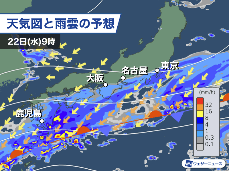 東京都心や名古屋市など都市部でも本降りの雨が予想され、関東は北東の風がやや強く吹きますので、濡れないような大きめの傘やレインコートなどが良さそうです。