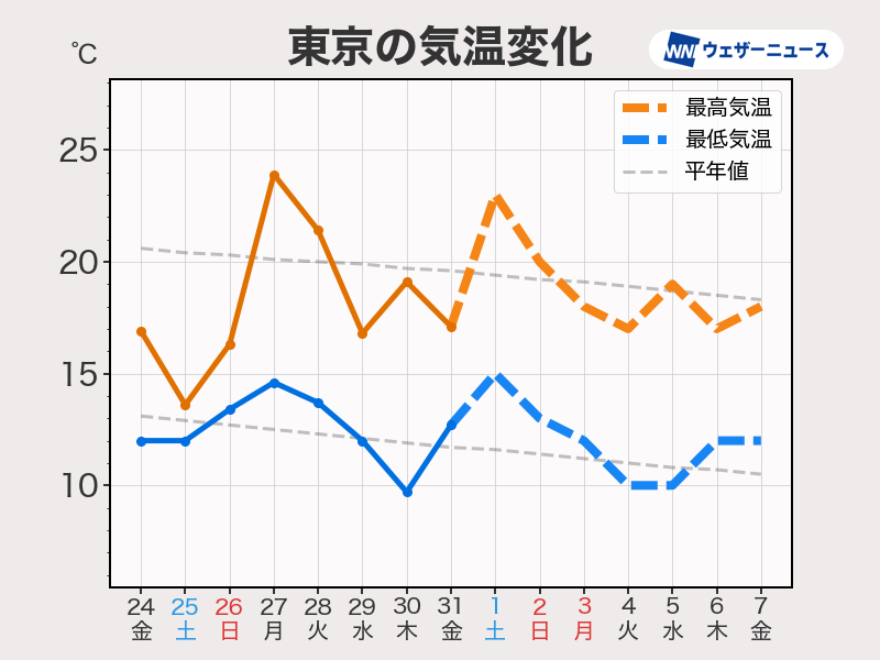 週末は暖気の影響で気温が上昇傾向ですが、雨が降ると寒く感じるかもしれません。三連休最終日になると再び気温が下がります。