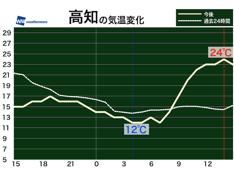 太平洋沿岸では25℃に近づく所があり、日差しの下では少し汗ばむくらいになります。服装選びにご注意ください。