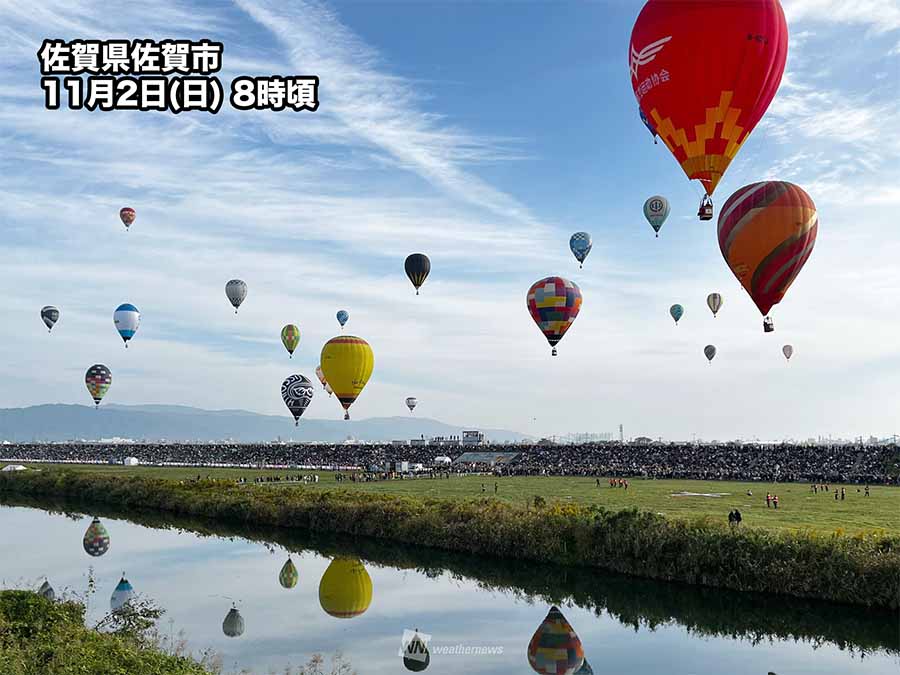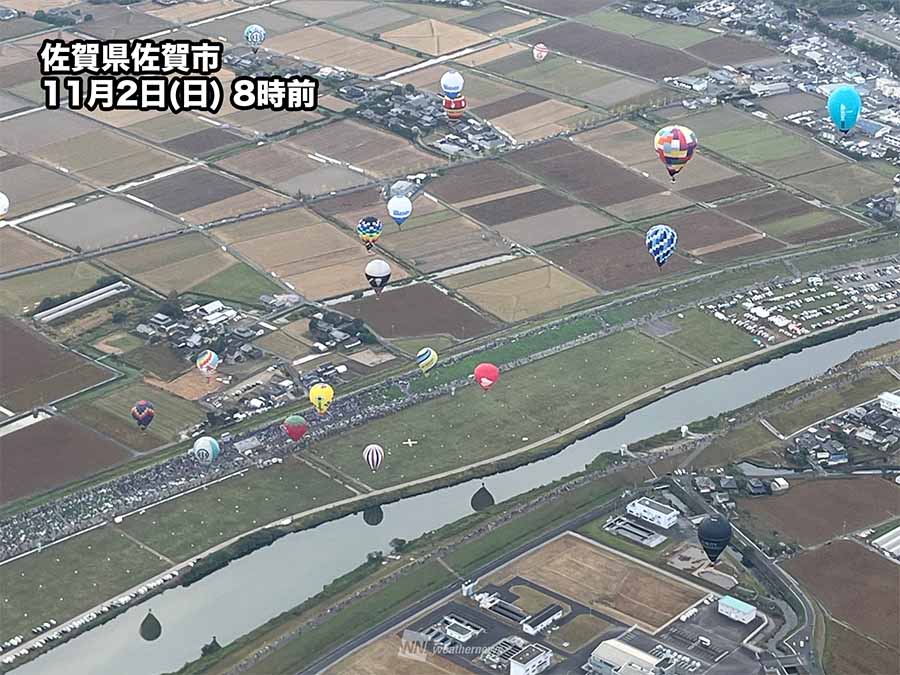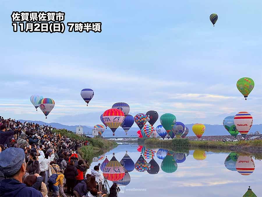 昨年は台風21号から変わった低気圧や前線の影響で大雨や強風の影響がでて、ほぼ全日程が中止となっていたため、今年は2年ぶりの絶景を見ようと世界中から多くの観客が佐賀を訪れているようです。