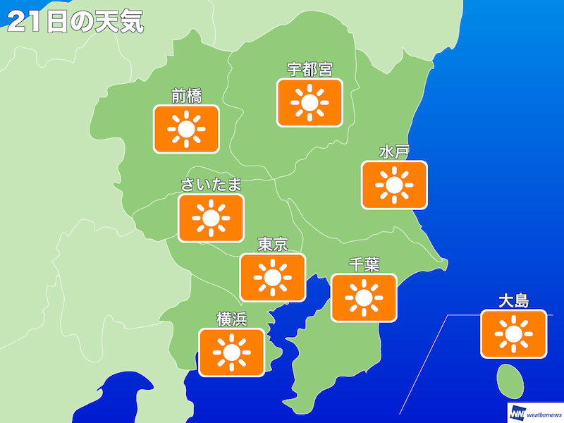 今日の関東は雨の心配も少ない予想です。空気は乾燥して冬晴れを思わせる晴天が続きます。火災が起きやすくなるので火の取り扱いに注意してください。