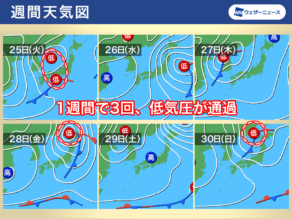 1週間で3回、低気圧が通過