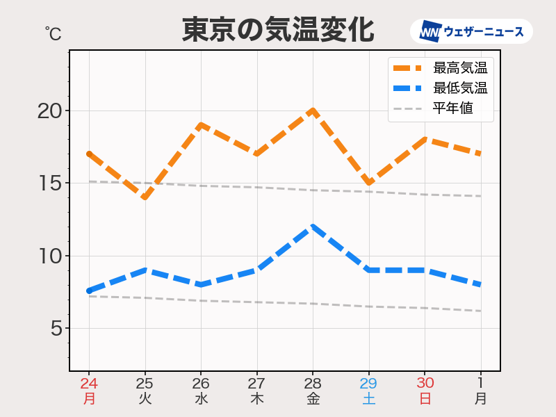 この先、日中の気温は平年並みかやや高めとなり、昼間は比較的過ごしやすい陽気となります。