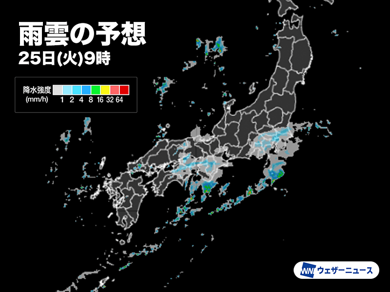三連休明けは広い範囲で雨 雷を伴い強く降る所も