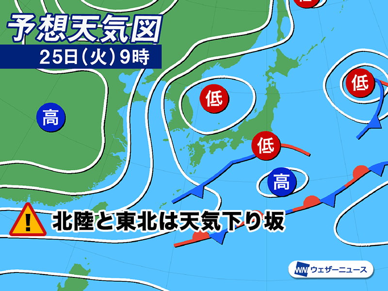 昼間の気温は今日24日(月)に比べると少し低い予想となっています。