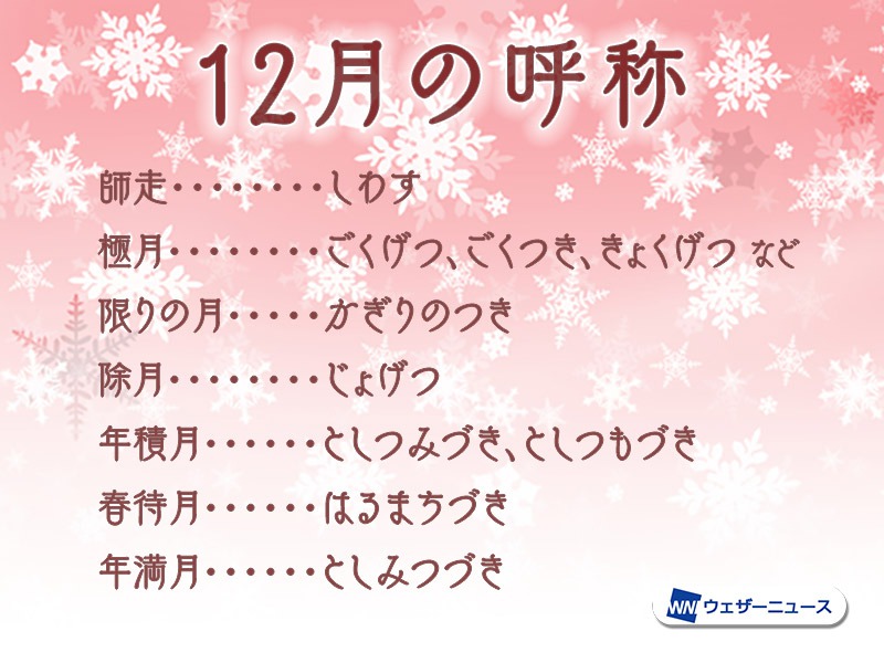 このほかにも、12月の異称はたくさんあるそうです。みなさんの気持ちにあう異称はあったでしょうか。