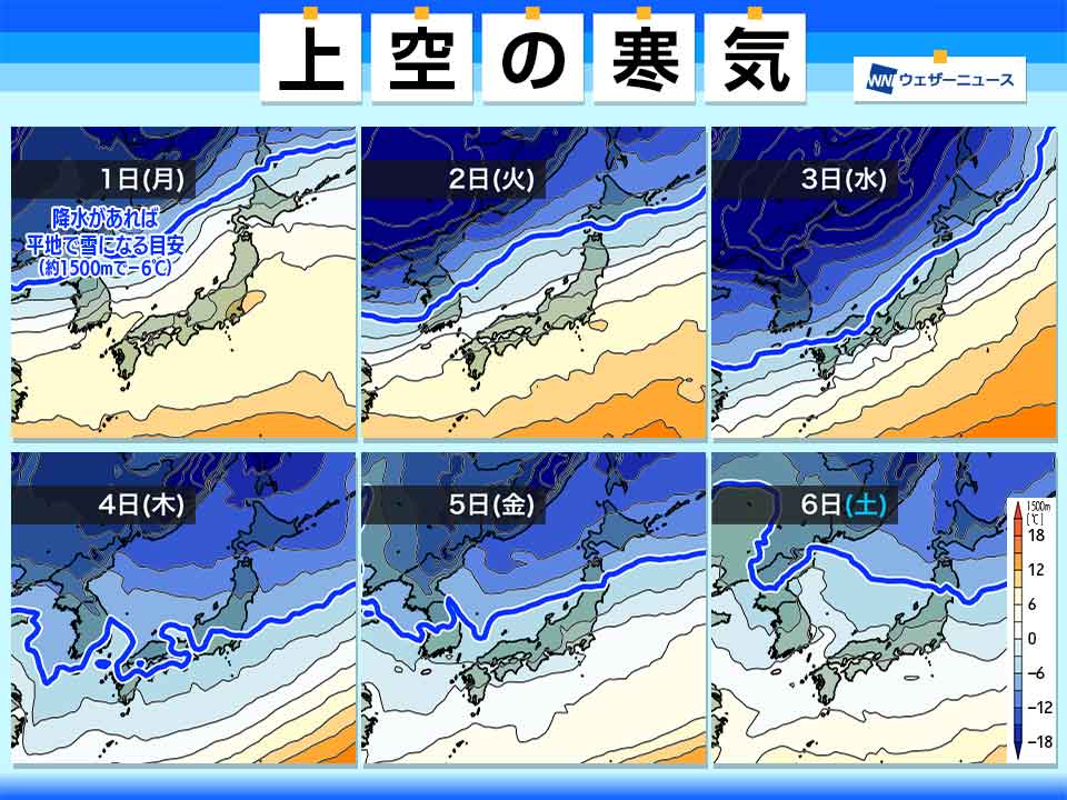 週中頃に強い寒気が南下 西日本でも雪の可能性