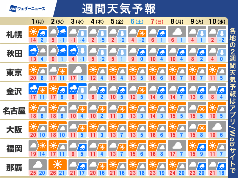 気温はこの頃まで低い傾向で、12月早々に冬の深まりが加速します。体調管理に十分注意してください。