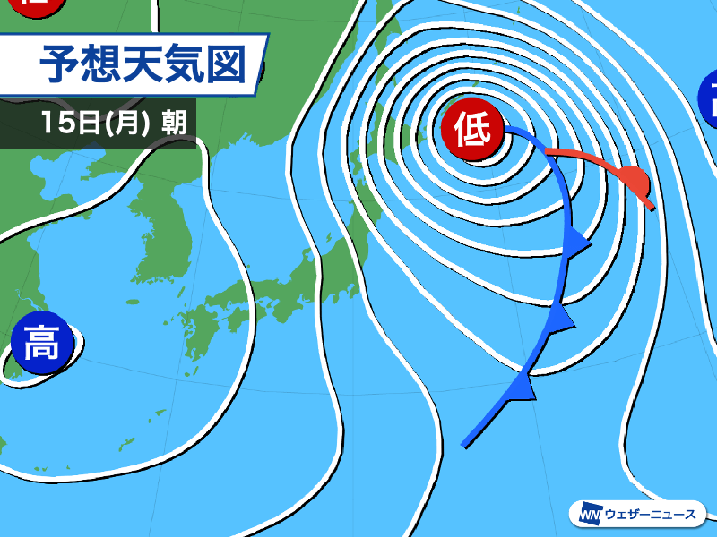 14日(日)〜15日(月)は全国的に風が強まり、荒れた天気になる見込みです。特に東日本や北日本の沿岸部は暴風となるおそれがあります。交通機関にも影響が出る可能性があるため、随時最新の情報を確認して安全を第一に行動するようにしてください。