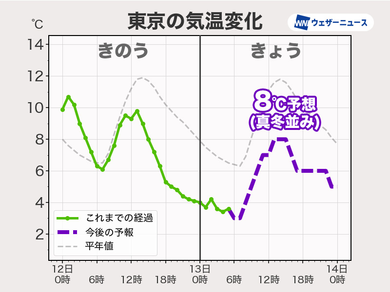 気温は昨日に比べると高く、厳しい寒さは少し和らぎそうです。