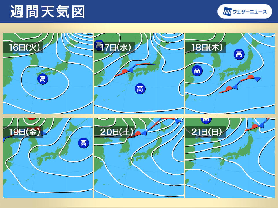 週間天気予報 週明けは北日本で荒天注意 週後半は21℃予想の所も