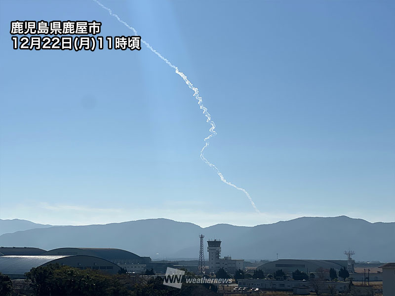 鹿児島県内・宮崎県内の各地から打上げの様子が確認でき、ウェザーニュースアプリにも、青空を背景に白い航跡を引いて上昇するH3ロケットの様子がたくさん投稿されました。