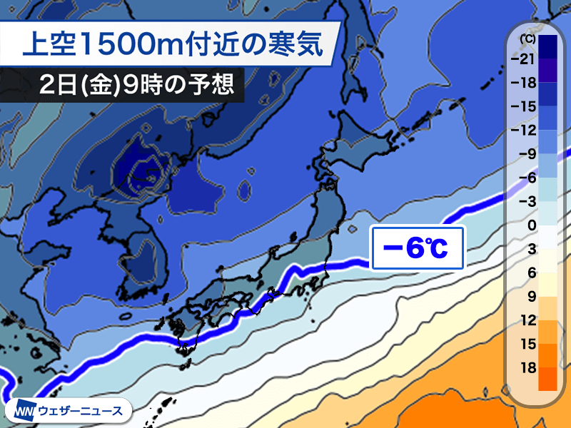 31日(水)からは寒気の影響が強まり、北日本では最高気温が0℃未満の真冬日となる所が多く、厳しい寒さが戻る見込みです。