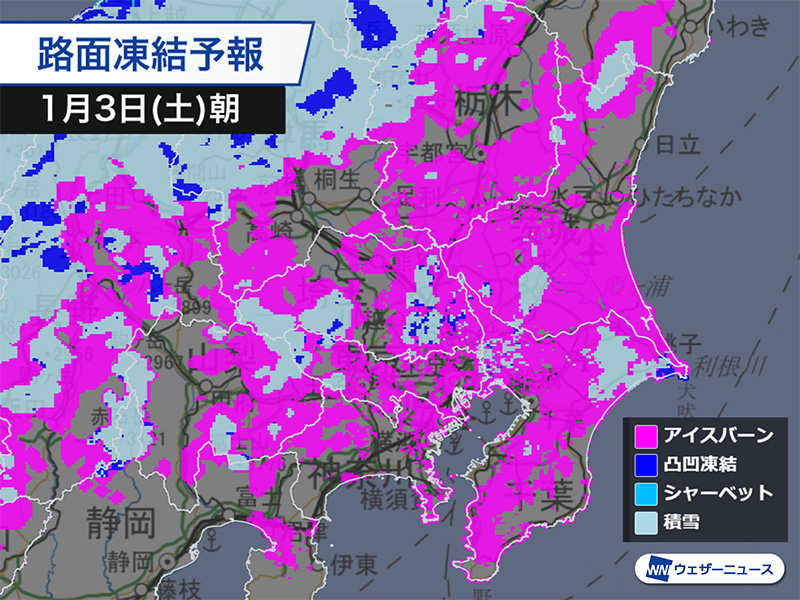 関東の雪はピーク越え 3日(土)朝は路面凍結に注意