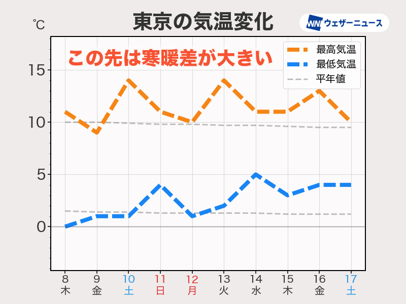 低気圧の通過に合わせて、短い周期で気温がアップダウンします。