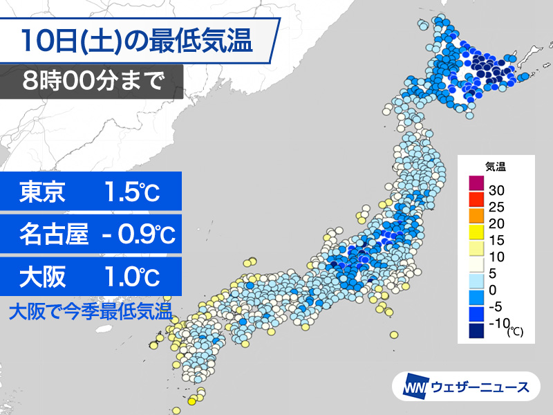 大阪 1.0 ℃(今季最低)