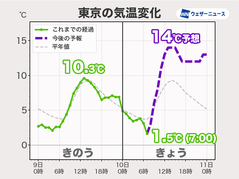 東京や大阪など15℃近くまで上がる予想 一日の寒暖差に注意
