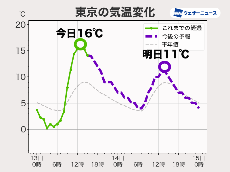 今日より気温が大幅に下がり、昼間も風が冷たく感じられそうです。暖かくしてお過ごしください。