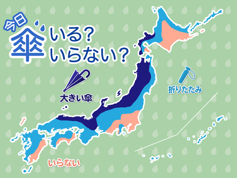 関東南部、四国や九州の太平洋側でも日差しが届き、傘は必要なさそうです。