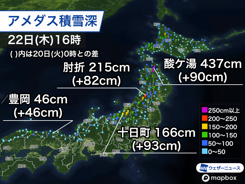 東北、北陸などで積雪が大きく増加