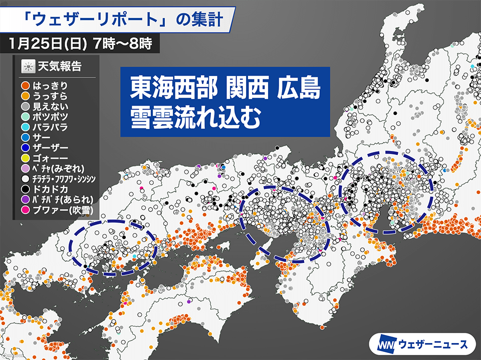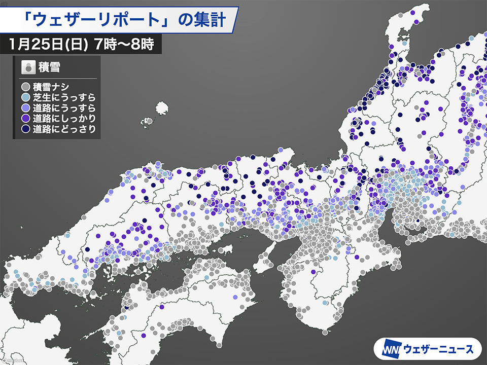 愛知や大阪では雪は朝が中心
