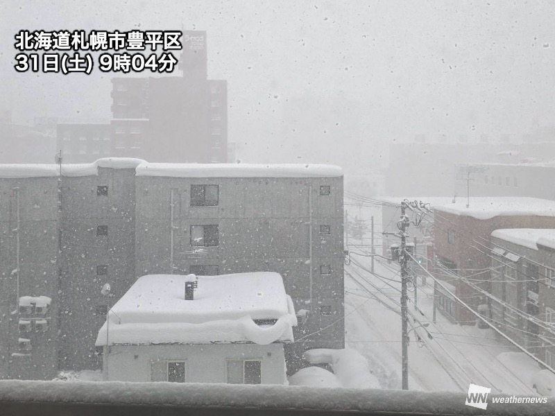 昼頃までは同じような場所に活発な雪雲がかかりやすく、局地的には1時間に5cm前後の雪となるおそれがあります。引き続き、積雪の急増や視界不良に警戒が必要です。荒天の間の不要不急な外出は控えてください。