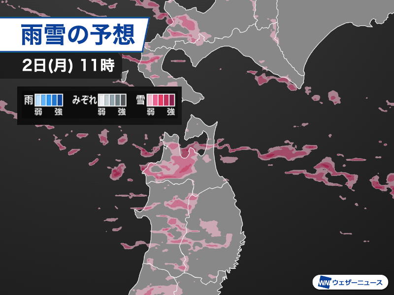 シアラインは南下傾向で、この後は一旦青森市付近では雪の降り方が弱まるタイミングがある見通しです。ただ、夜にかけて北上し、再び強まるとみています。大気の状態が不安定なため、雷や突風にも注意が必要です。