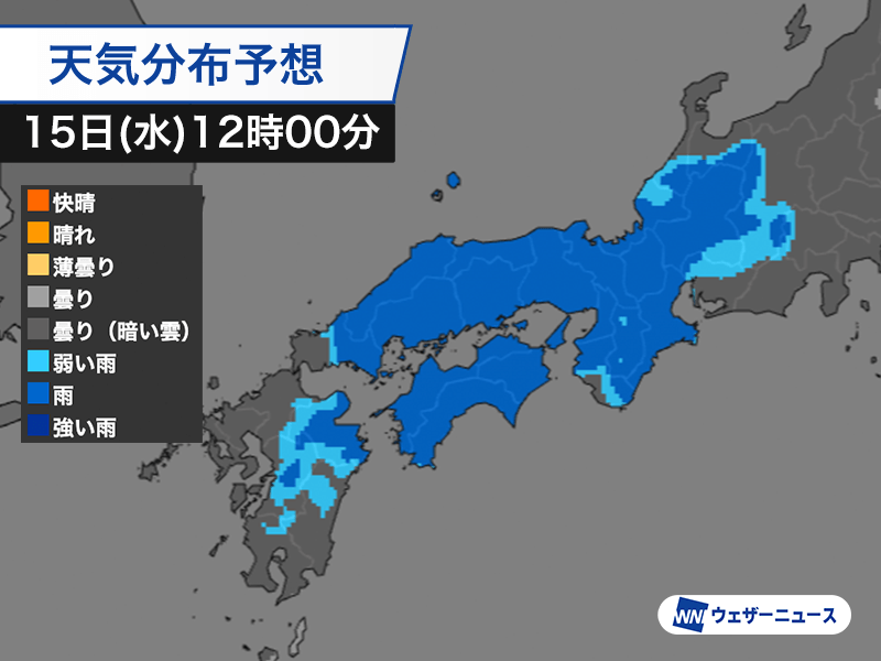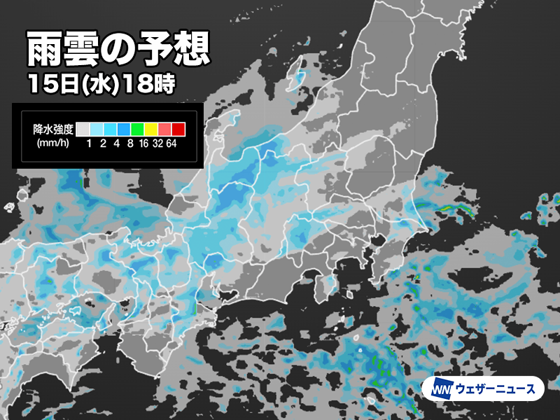 関東は朝から厚い雲に覆われ、雨の降りやすい一日となります。午前中から雨のぱらつく所があり、午後は各地で本降りとなる見込みです。帰宅時間帯は傘が必要になるため、お出かけの時に雨が降っていなくても忘れずにお持ちください。
