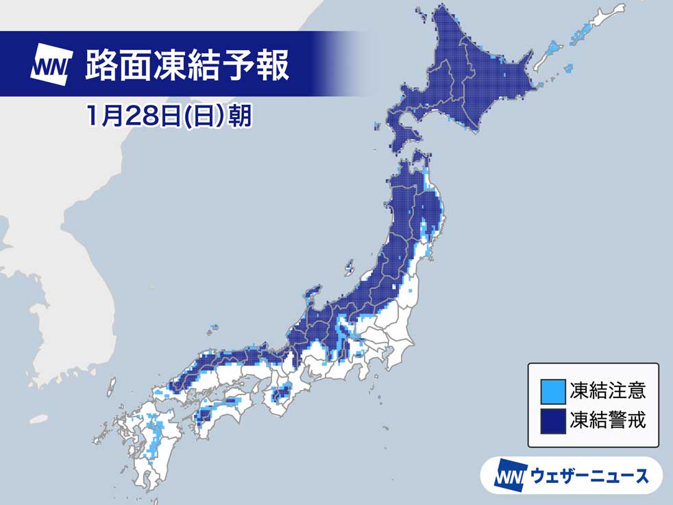 明日の朝は札幌で−3℃、山形で−2℃、高山(岐阜)で−3℃、大野(福井)で−2℃など、北海道各地や東北から東日本の内陸部で氷点下の冷え込みになります。