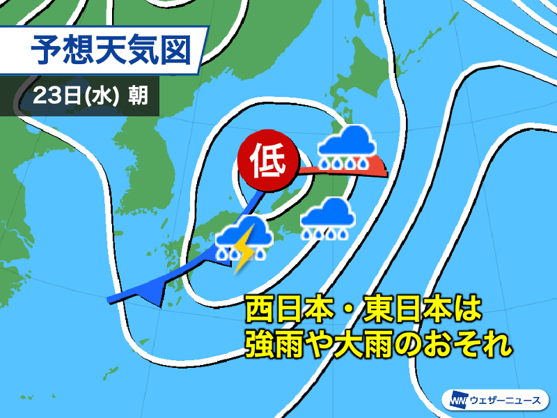 現時点では低気圧や前線の予測に不確実性があり、特に23日(水)に雨の降るエリアは変化する可能性があります。予定がある場合は最新の情報をこまめにご確認ください。