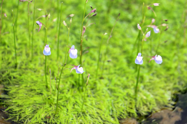 捕虫葉は地中または水中にあり、根茎などに捕虫嚢(ほちゅうのう)と呼ばれる小さな袋をつけ、虫がなかに入り込むとフタを閉じて捕まえる、「吸い込み式」の食虫植物です。この捕虫器官は肉眼ではその動きを確認できないほど小さいです。