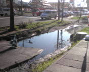 「信号機が復旧し、最近は、パトロールで走行しているパトカーも、ほとんど地元宮城県警の車になりましたが、細かな復旧はまだまだです。角を曲がった途端に大きな水溜まりがバーン!と現れて、びっくり。震災で波打って、大きく陥没した歩道に、一昨日からの雨が溜まったようです。そうか、雨が降ったら溜まるんだ…」