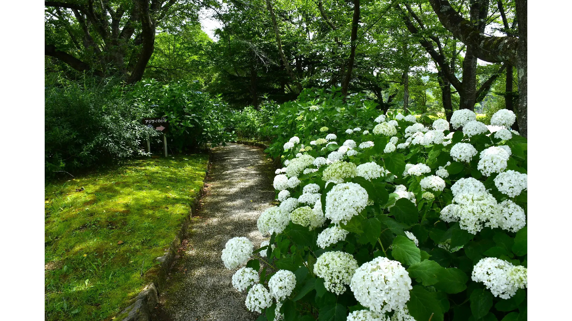 南地区の彩のひろばに隣接する「アジサイの小径」には15品種約2200株のアジサイが植栽されております。また「花木園」「ふるさと村」にも 約1800 株 のアジサイが植栽されております。品種によって開花の時期は異なってきますが、6月下旬~7月中旬にかけて例年見頃を迎えます。
