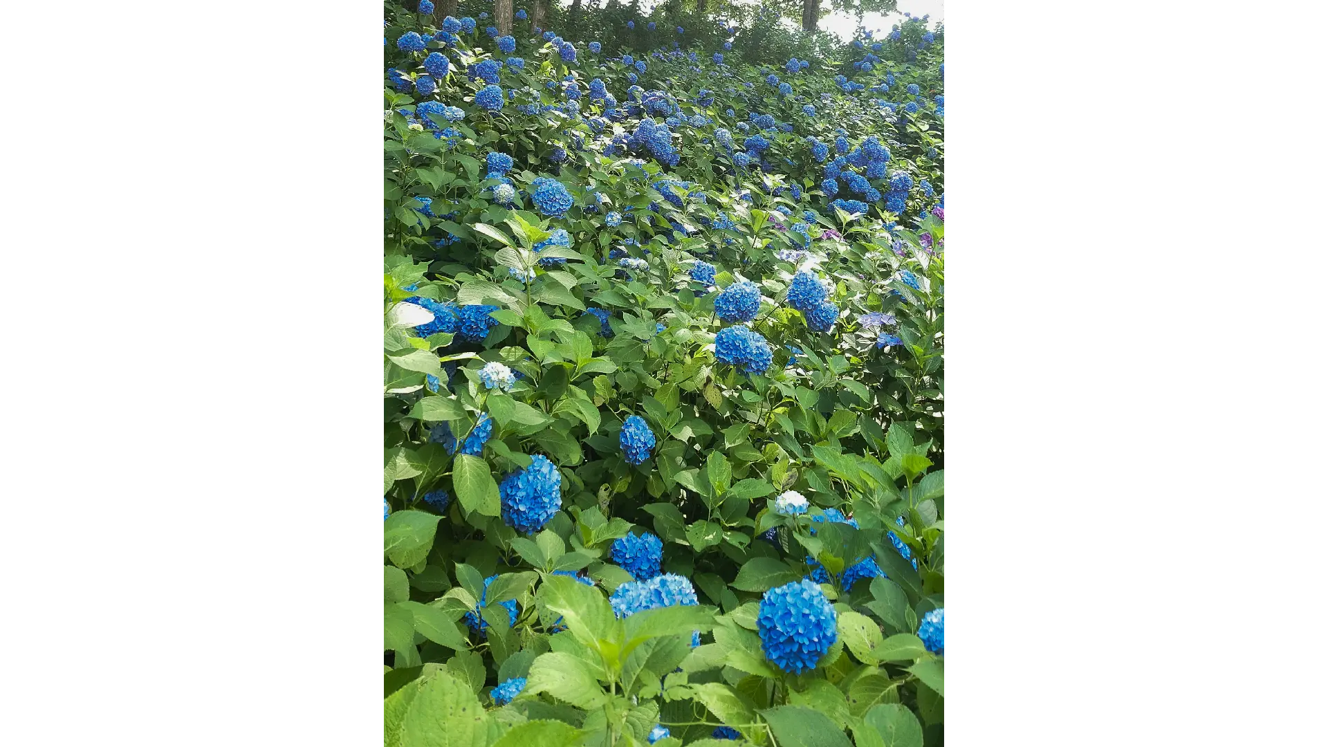主なガクアジサイの他、青いテマリ等30種類のアジサイが咲きます。