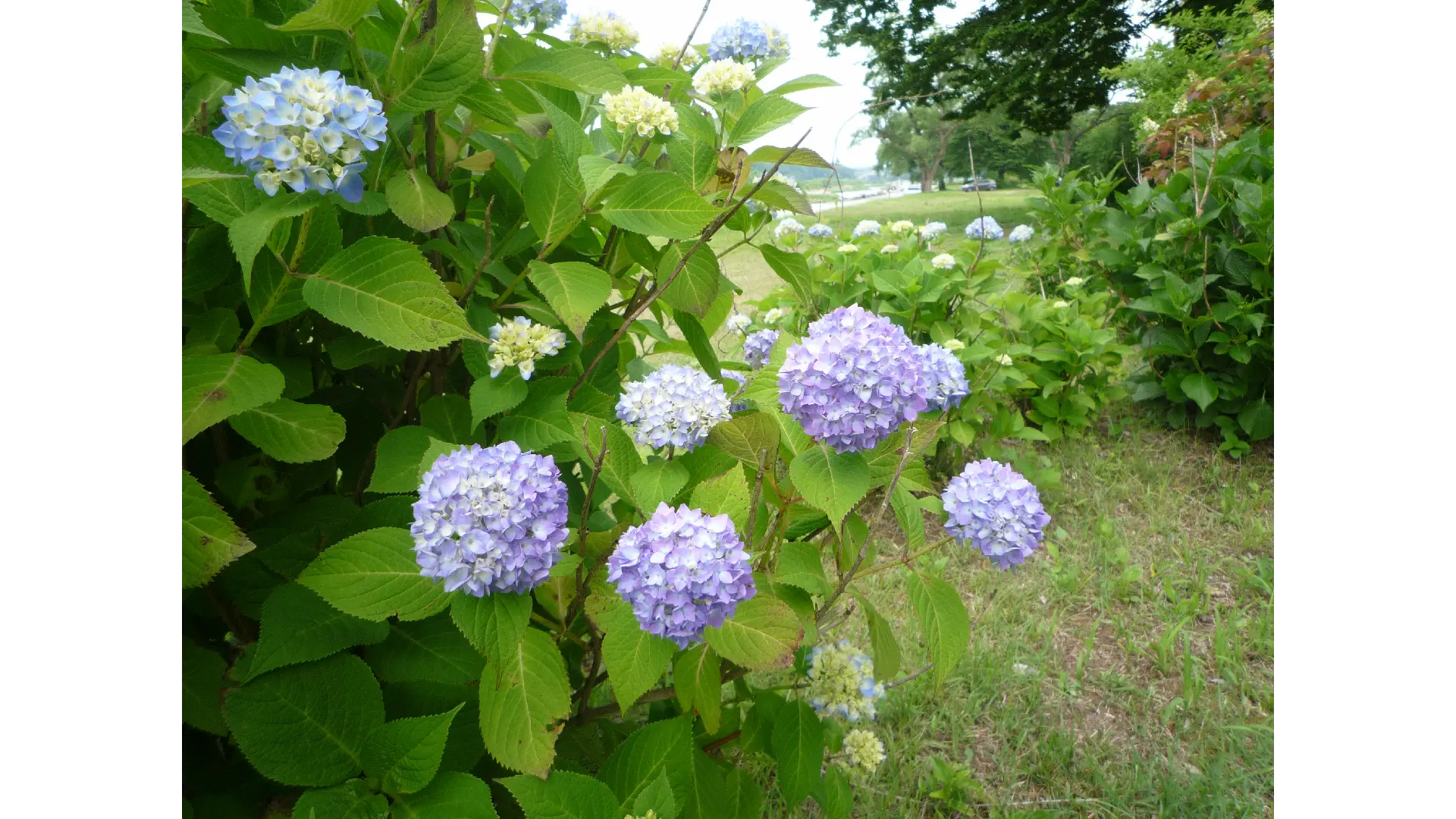 那珂川河畔公園から鳥野目河川公園へと繋がる川沿いの道路は、両サイドにアジサイを楽しむことが出来ます。