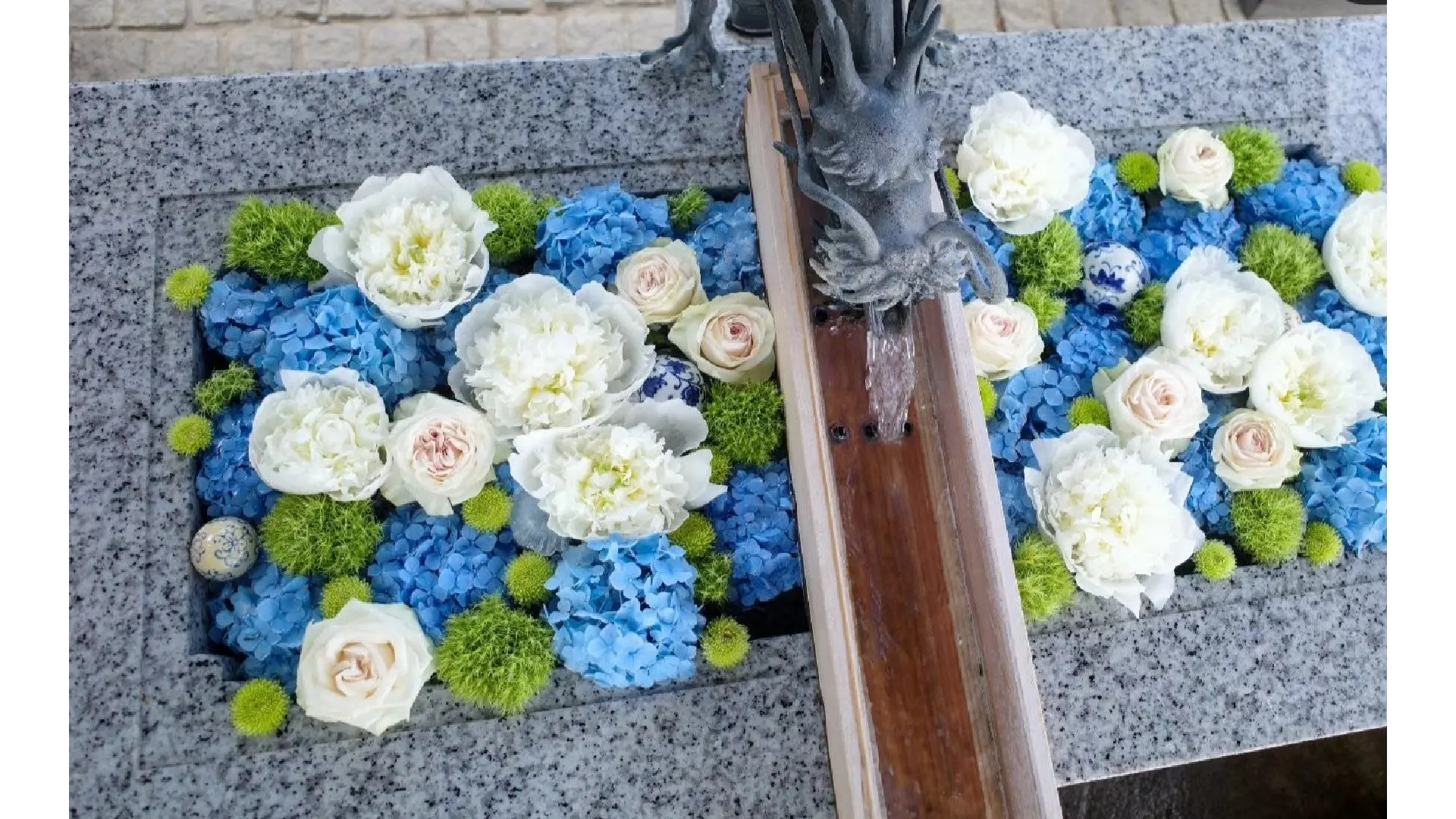 紫陽花神社と知られる川越八幡宮。境内・参道では、様々な品種の紫陽花が楽しめます。また、紫陽花をメインとした花手水も期間中は、お飾りをされており参拝者様の心身の癒しの場となっております。