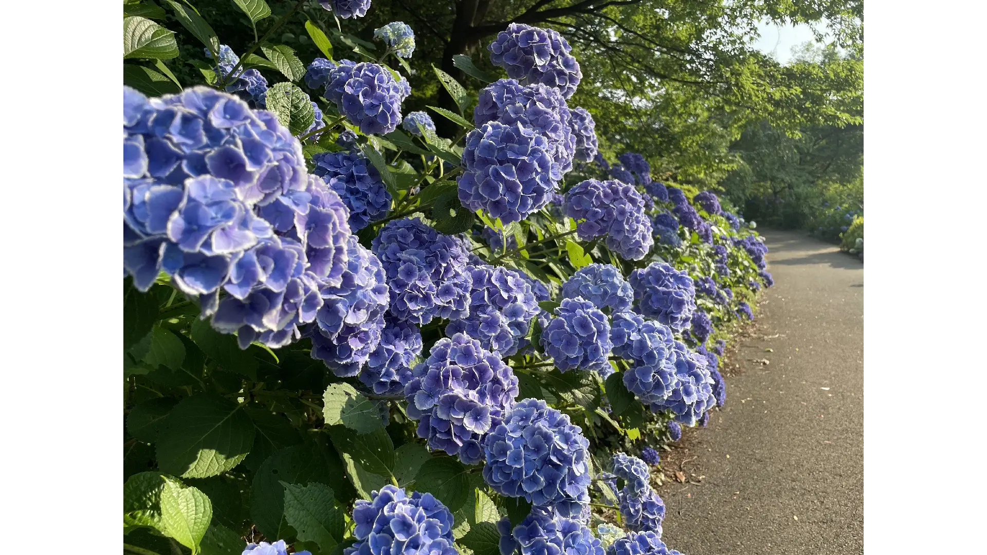 京成バラ園内の自然風庭園にあるポンドサイドの周囲に「ダンスパーティ、アナベル、ピラミッドアジサイ」等の幾種類ものあじさいが、次々にリレーを繋ぐ形で長期間鑑賞することが出来ます。