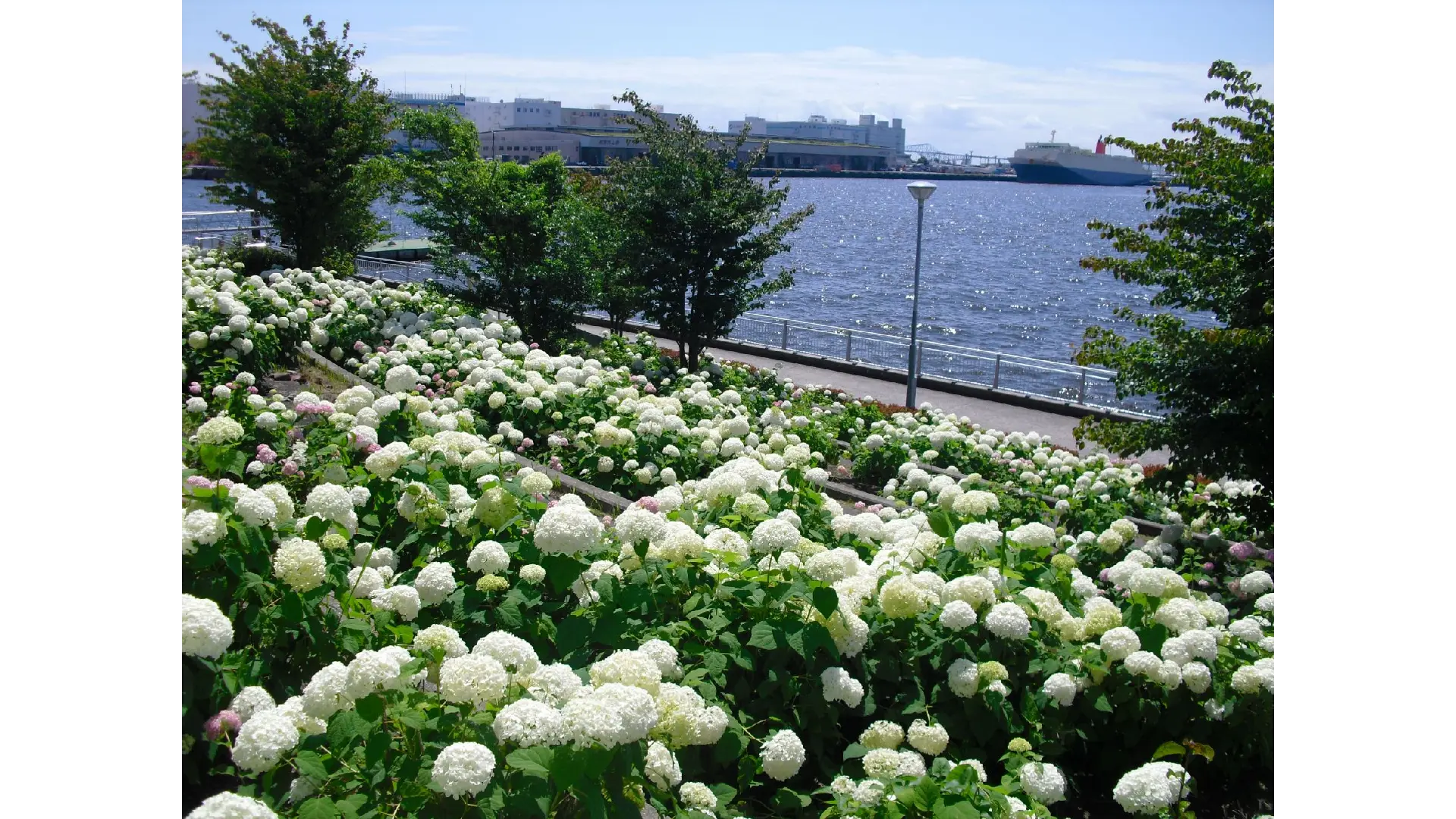 「新交通ゆりかもめ」の青海駅に近いエリアでアジサイの花が観賞できます。