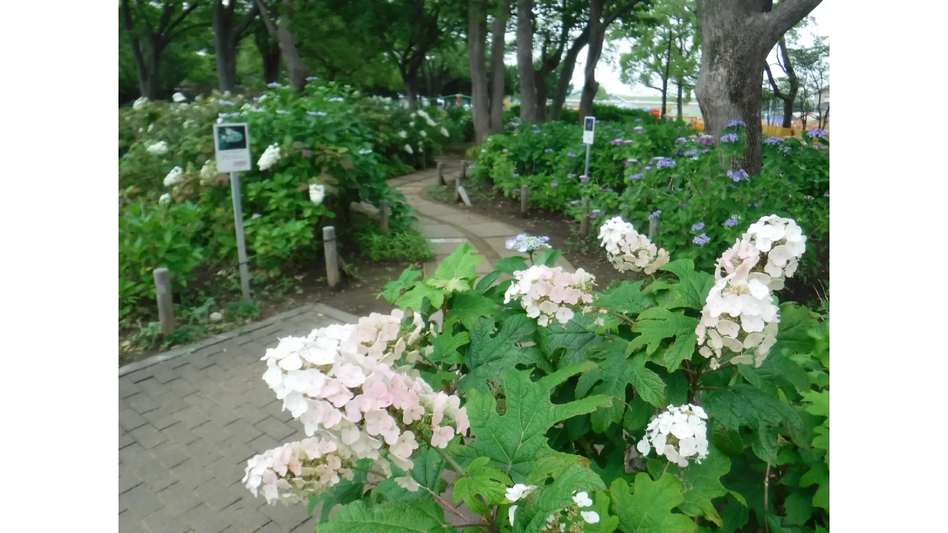 平成二十年度よりボランティア団体と協力しながら、アジサイの植栽を開始し、今では約440株のアジサイが植栽されております。 篠崎公園のビュースポットとして、アジサイ園の色とりどりのアジサイの花をお楽しみください。